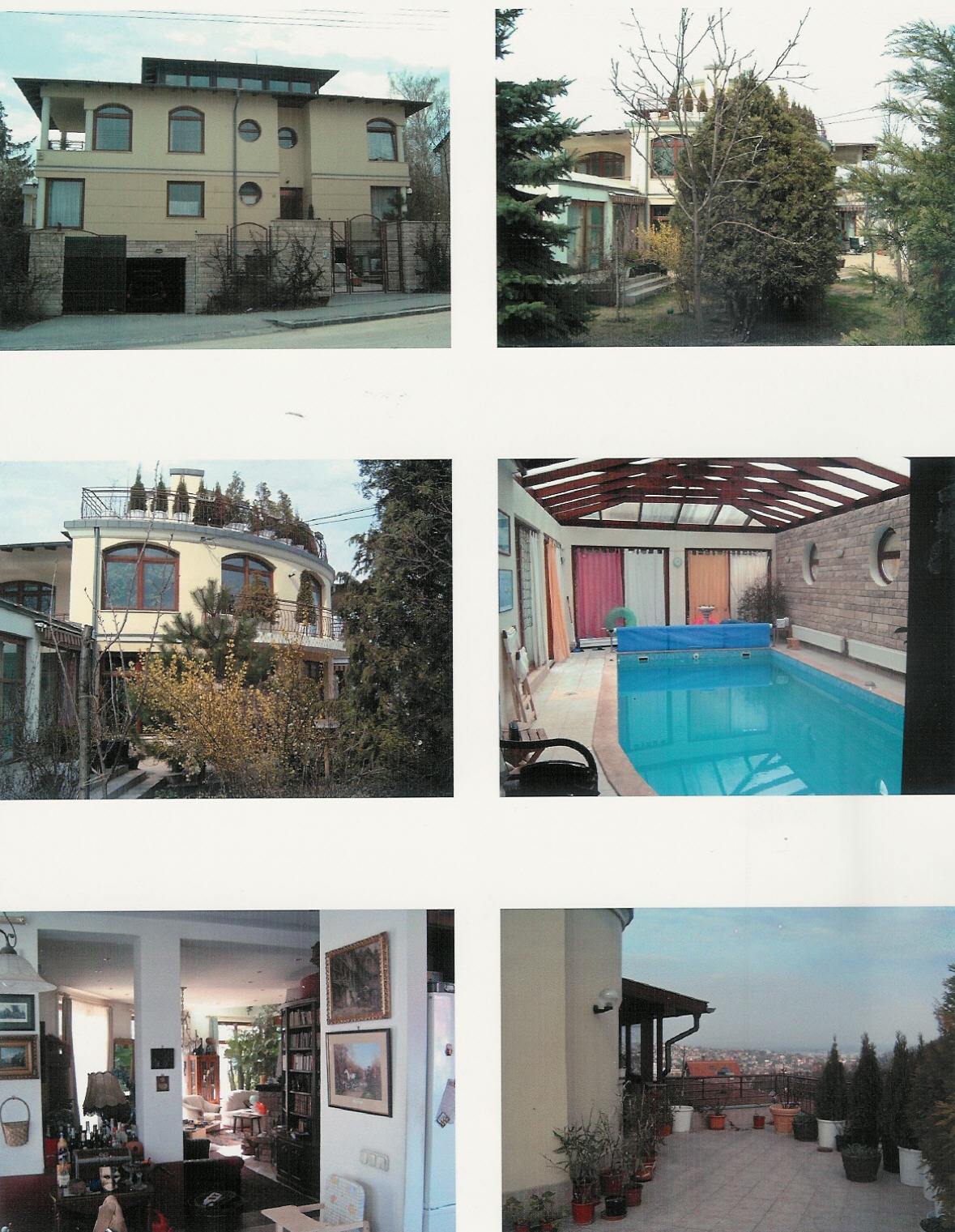 - félszuterén : garázs, szélfogó, tároló, teakonyha, WC, 2 irodahelyiség, háztartási helyiség, uszodagépészeti tér - földszint : szélfogó, előtér, WC-kézmosó, konyha-kamra, étkező, nappali, terasz, 1 szoba gardróbbal-fürdőszobával, szauna, WC-zuhanyzó, belső uszoda - emelet : előtér, nappali, 3 hálószoba, 2 fürdőszoba, 2 gardrób, galéria, 2 erkély, loggia - tetőtér : télikert-tartózkodó ( 10,6 nm ), tetőterasz ( 37,5 nm )Fűtés: